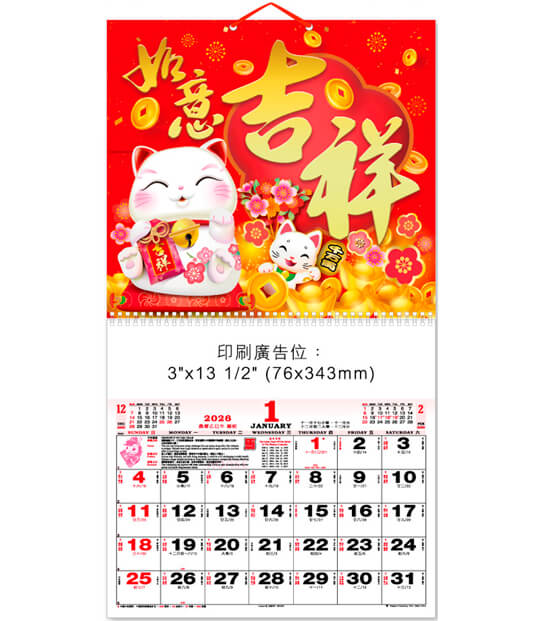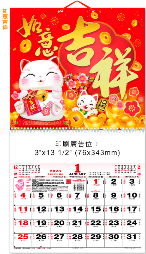 彩色燙金福字吊牌月曆 – M26-08- AA / BB – 如意吉祥