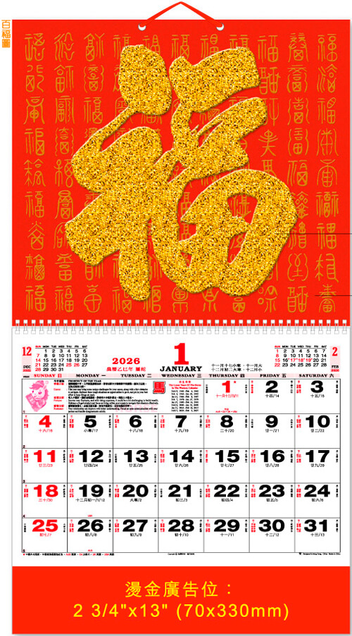 金貴麗”福字閃金粉”福曆 – MCT26-21-AA / BB 百福圖