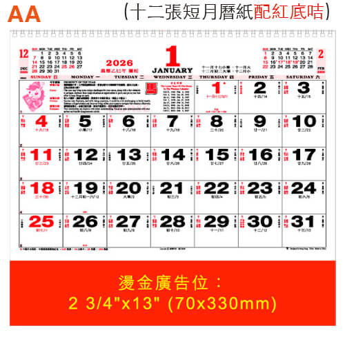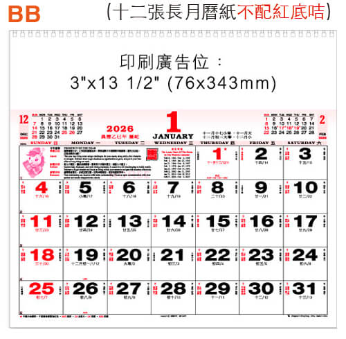 配印刷廣告,雙色月曆肉 (此款印刷肉沒有紅底咭)