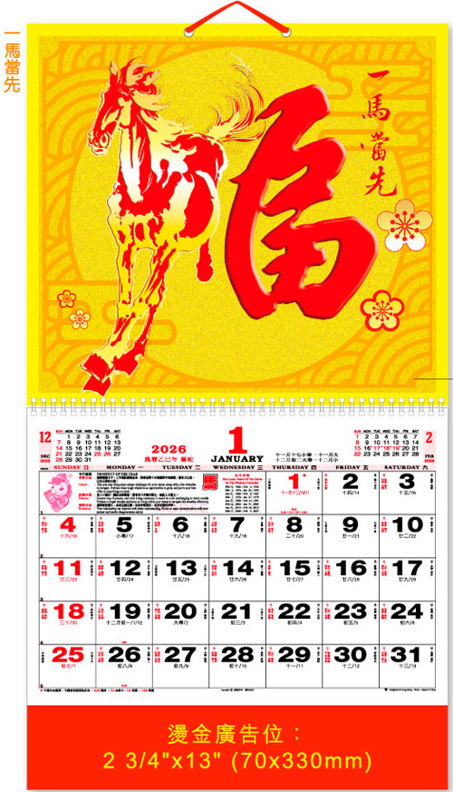 M26-881-AA 配燙金廣告雙色月曆肉 燙金廣告位:70 mm x 330 mm