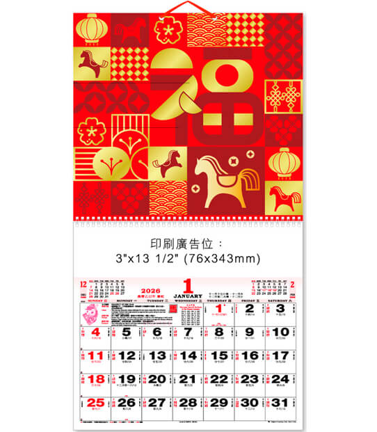 12 SHEETS 2C GOLD FOIL FOOK CALENDAR – M2C-2614-AA / BB