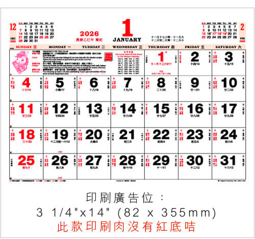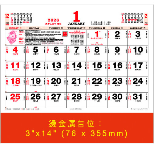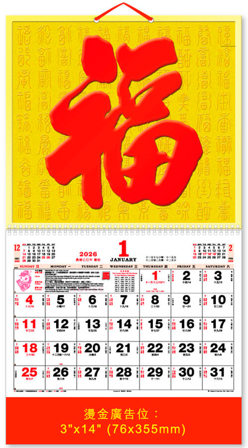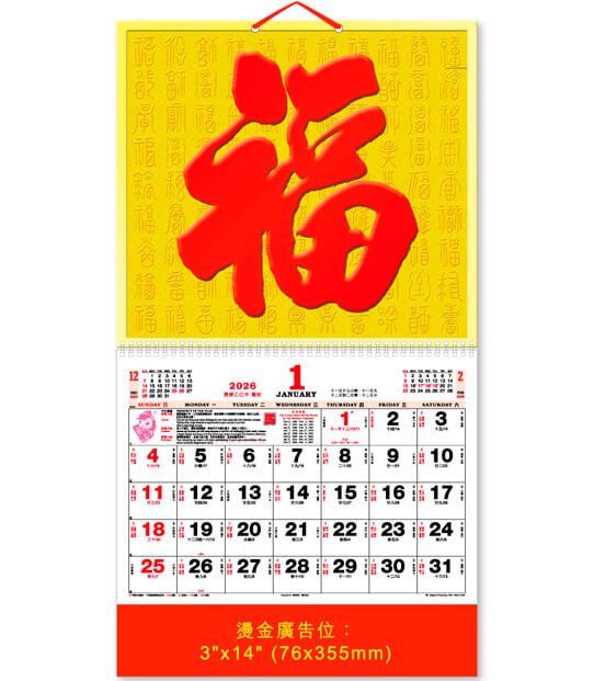 12 SHEETS DELUXE FOILED PAK FOOK CALENDAR–MTC26-E01/E11百福圖