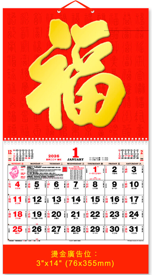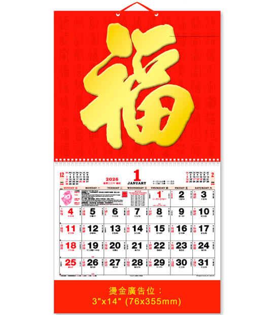 12 SHEETS DELUXE PAK FOOK CALENDAR – MTC88-01 / MTC88-11 百福圖