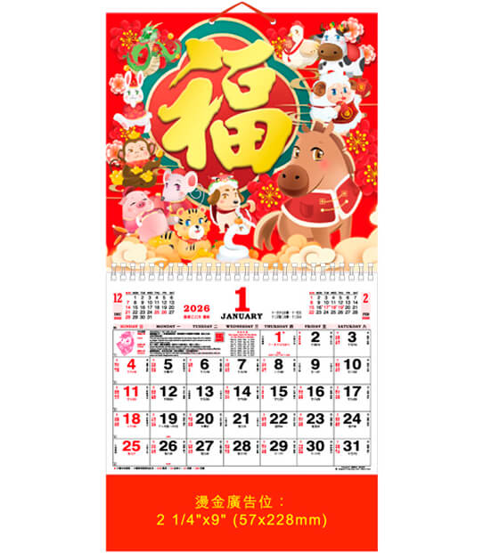 12 SHEETS FOOK (MEDIUM) CALENDAR – MAA99-2 – 大富大貴