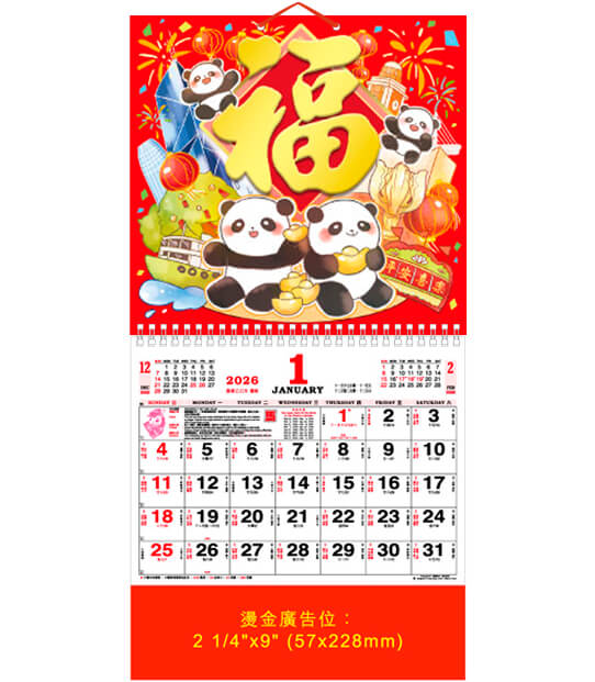 12 SHEETS FOOK (MEDIUM) CALENDAR – MAA99-4 – 平安喜樂