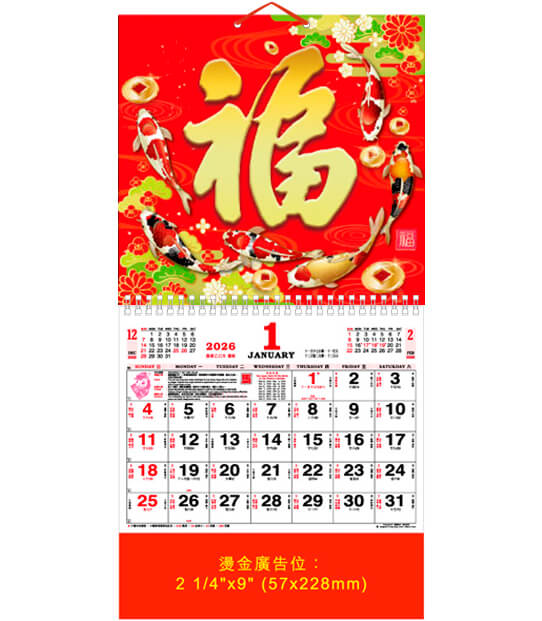 12 SHEETS FOOK (MEDIUM) CALENDAR – MAA99-6 – 富貴有餘