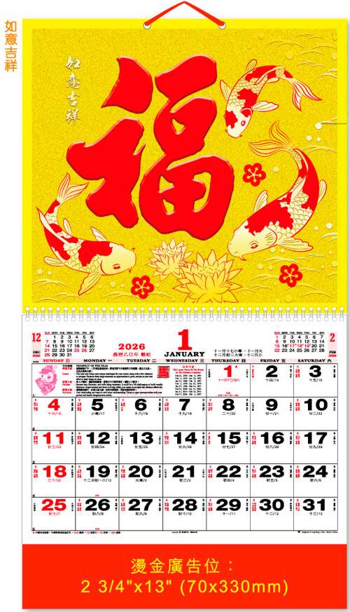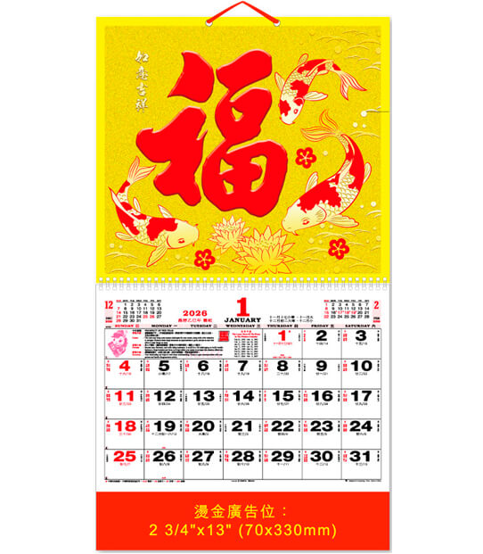12 SHEETS GOLD DELUXE FOIL FOOK CALENDAR-M26-883-AA/BB 如意吉祥