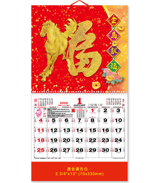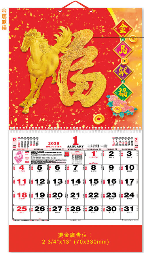 12 SHEETS GOLD FOIL ENGRAVING CALENDAR – MGE26-11-AA/BB