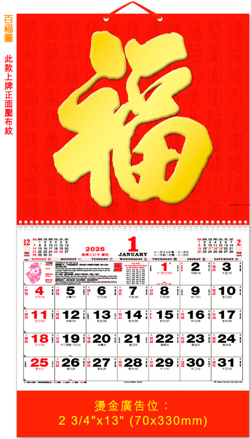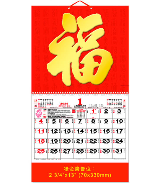 12 SHEETS PAK FOOK CALENDAR – M26-11-AA / BB – 百福圖